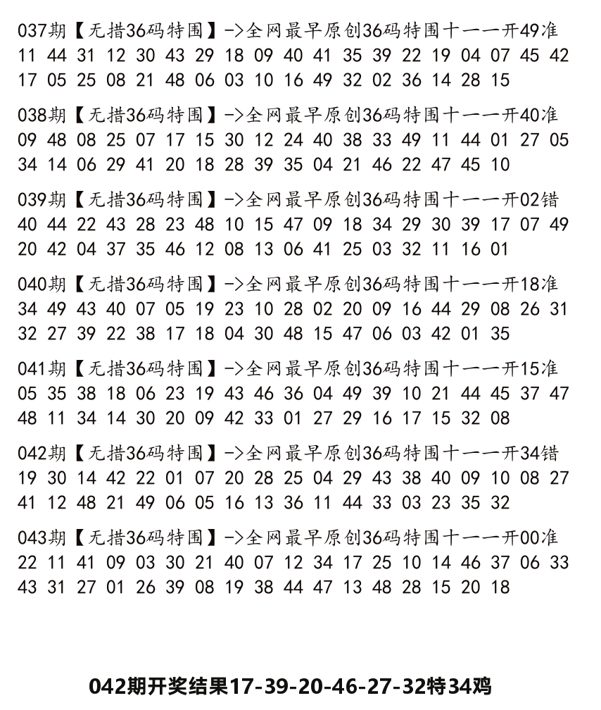 2026043期:36码特围